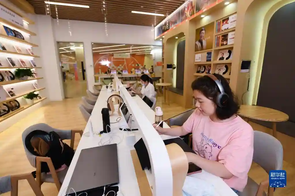 6月2日,在浙江省杭州市余杭区葛巷未来社区文化家园,居民在有声图书馆内学习。新华社记者翁忻旸摄