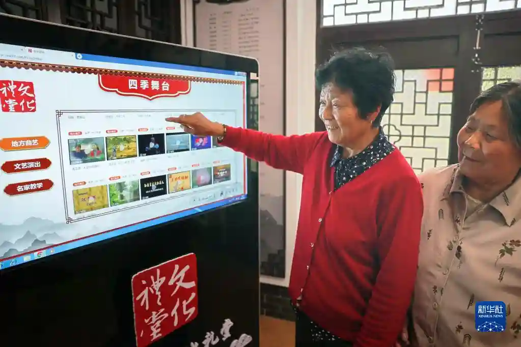 农民不仅要富“口袋”,也要富“脑袋”。在绍兴市越城区马山街道尚巷村,村里老人们喜欢约到文化礼堂听传统曲艺“莲花落”。透过礼堂门口的智慧触摸屏,村民不仅能了解村里特色文化,还能在线办理各大医院挂号预约、日常缴费等服务。