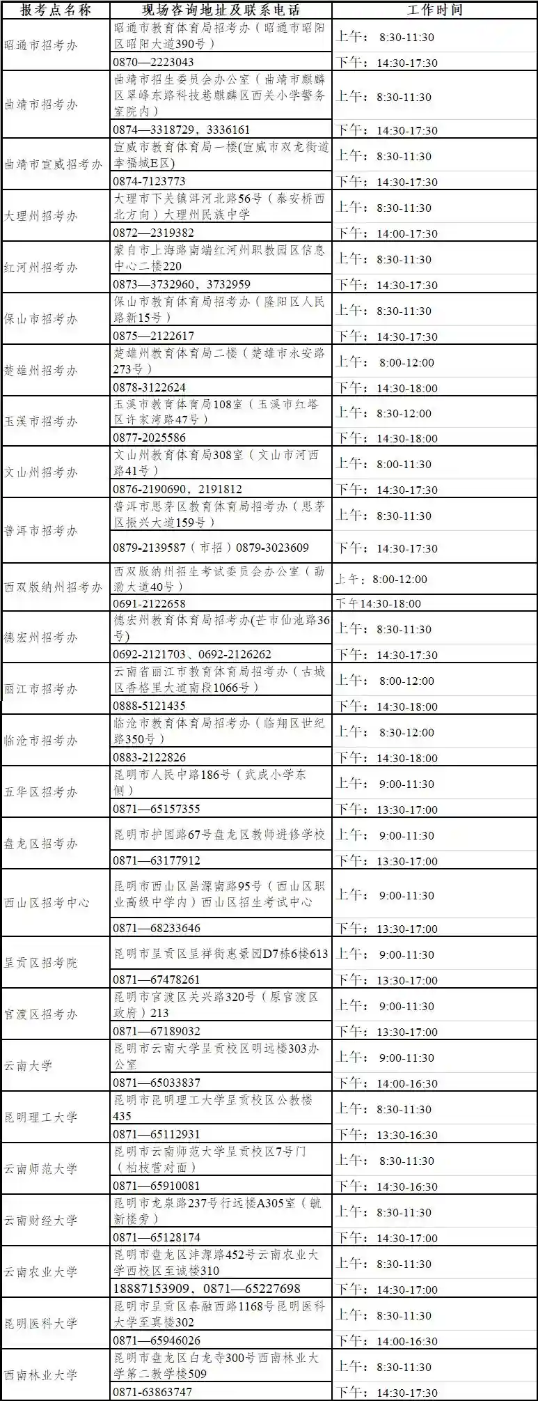 可前往云南省招生考试院网站