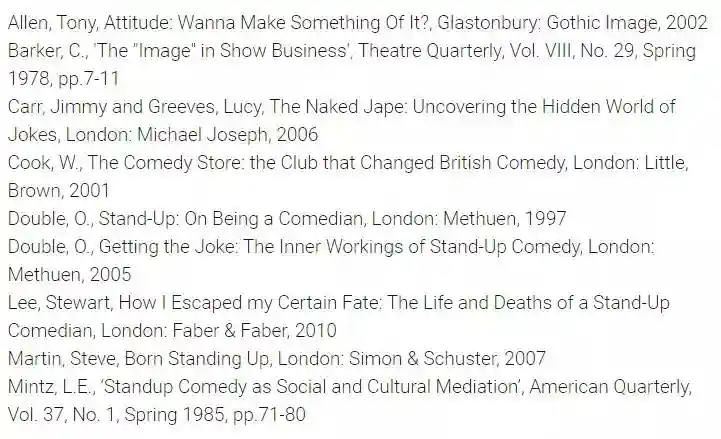 在肯特大学官方网页上,还列出了“脱口秀”课的推荐阅读清单,对喜剧脱口秀感兴趣的同学,可以提前阅读。