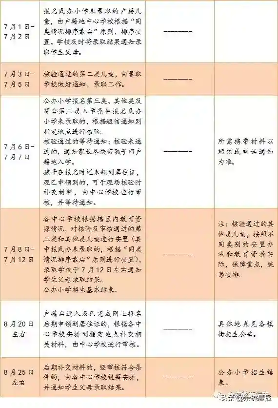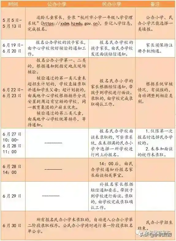 余杭区公办和民办小学同步招生时间安排