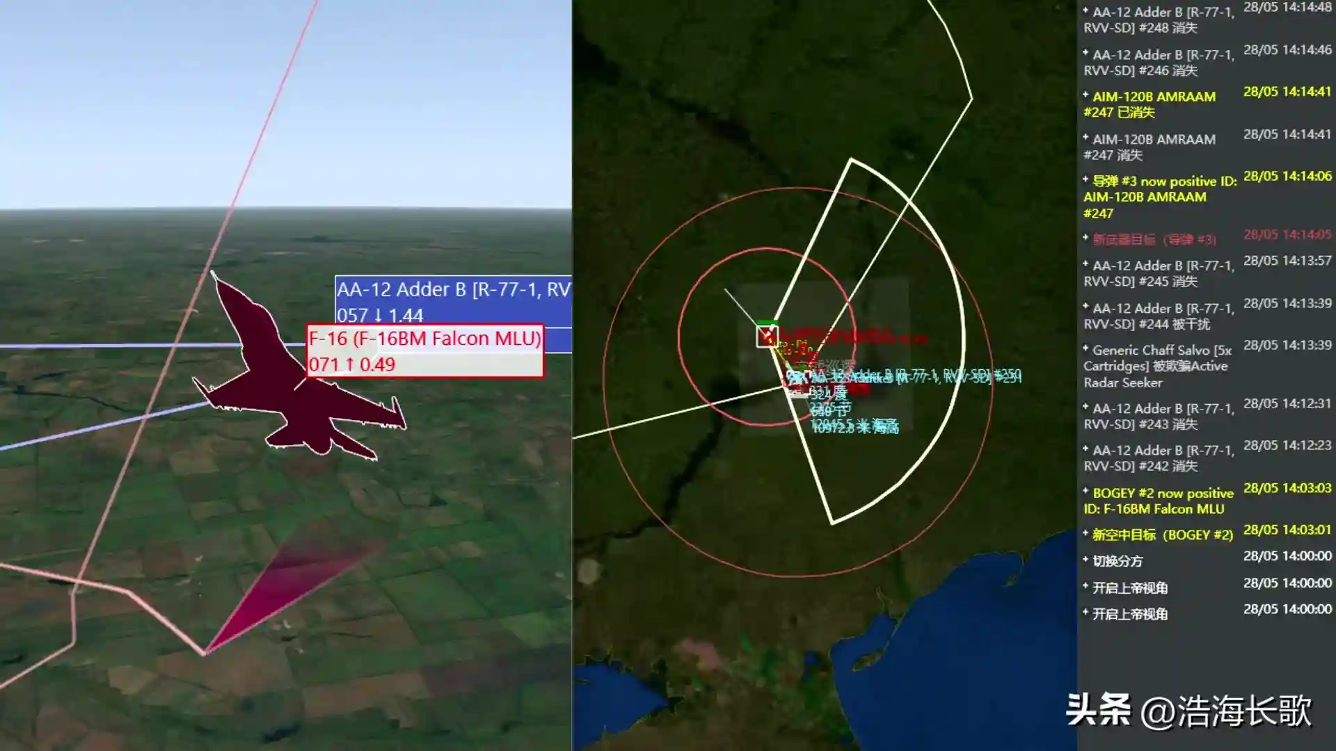 两机同时开展规避导弹的动作,但不幸的是,此时F16已经处于蝰蛇导弹的不可逃逸区,无论F16如何机动,都无法逃避打击,最终F16被击落。