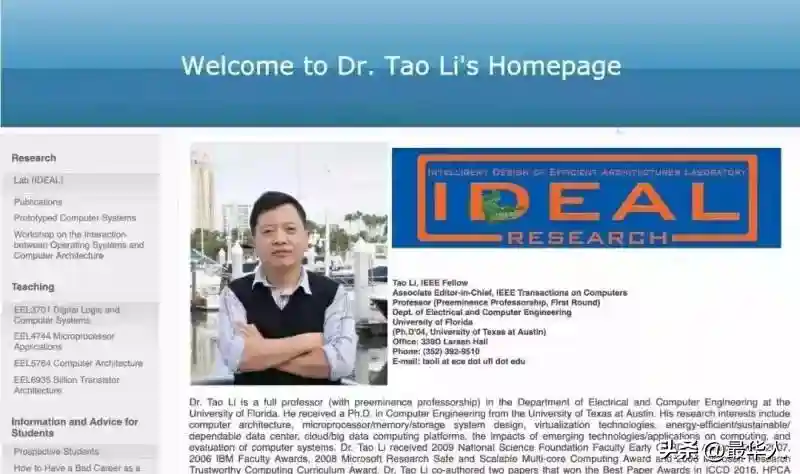 之所以做出这个选择,就是因为在该校电子工程系任职的李涛教授。