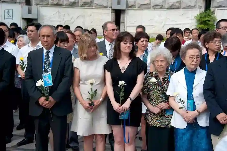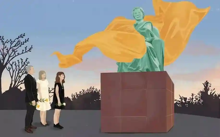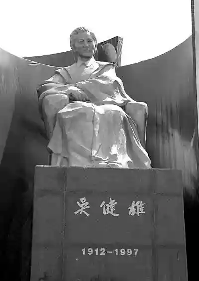 雕像揭幕的那天早晨,我们的亲戚带领着我的父亲袁纬承(VincentYuan,吴健雄唯一的孩子)、我的母亲露西·里昂(LucyLyon)和我(唯一的孙辈)来到一片折叠椅的海洋前面,每个椅子上都覆盖着红色和黄色的织物。仪式中有很多不加翻译的中文演讲,讲话中某个地方我听到了我父亲的名字,然后是我的名字。我表叔赶紧示意我们站起来挥手,然后响起了一片掌声。我的母亲是种族上而非宗教上的犹太人,金发碧眼,当她被介绍而站起身来时,数千人齐声发出一阵惊叹。