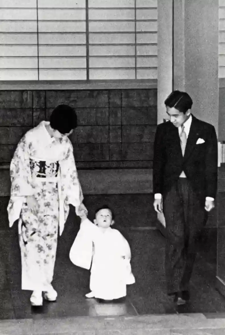 1963年,明仁天皇、皇后美智子与3岁的德仁。图/视觉中国