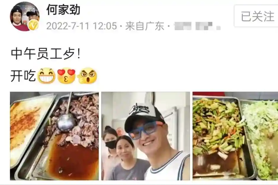 "中午员工餐,开吃。"配上一张朴实的工厂就餐照,这条普通的社交动态却引发网友热议。没错,发这条动态的正是昔日"展昭"扮演者何家劲。