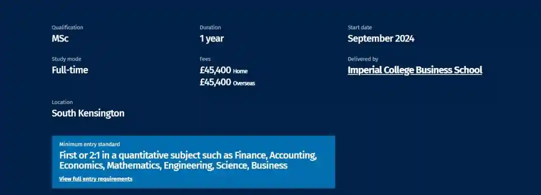 拥有英本2:1学位,具备金融、会计、经济学、数学、工程、科学、商业等学科前端分数;对中国申请者的要求为211或985大学的最终总加权平均分至少达到85%的学士学位。