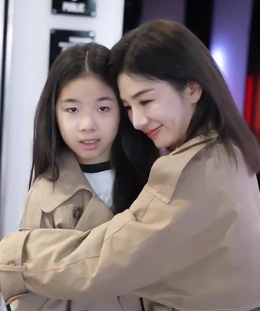 黄奕还轻轻地给女儿整理头发,那动作特别温柔,就好像在摸世界上最宝贝的东西一样,每一根头发丝儿都有她满满的母爱。