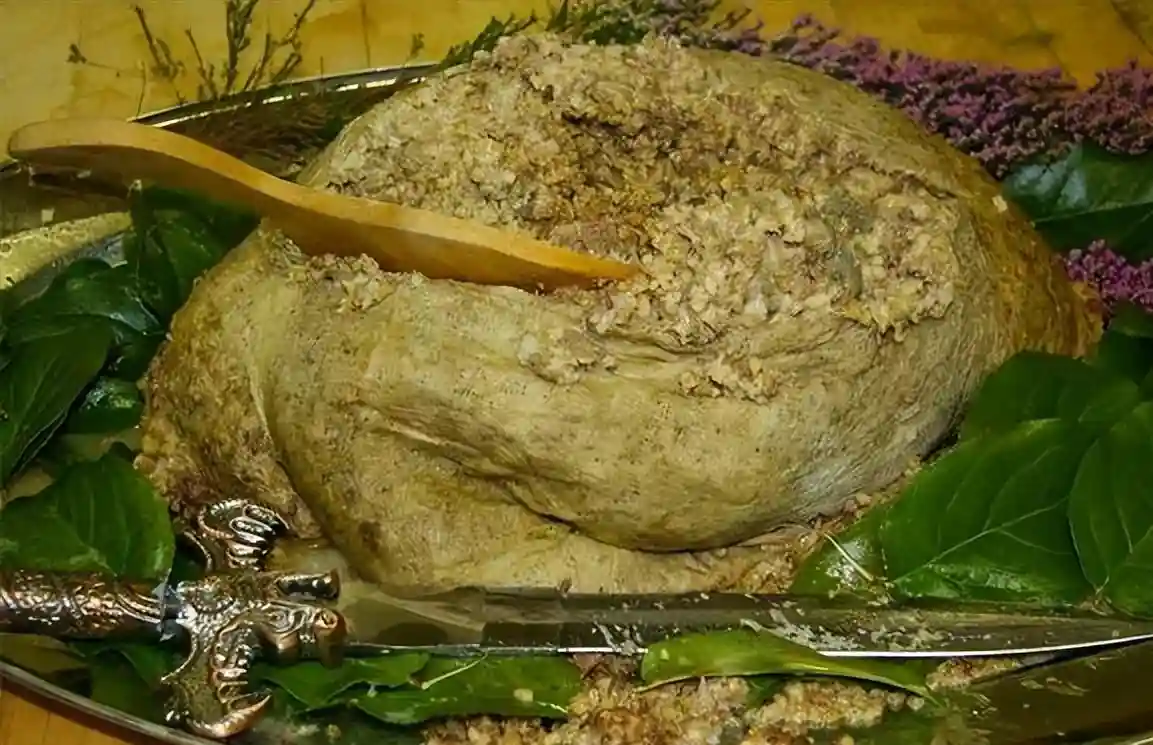 具体的做法是先将羊胃掏空,往里面塞入剁好的羊肉、燕麦和洋葱,然后再用油烟香辣调味和高汤等水煮三个小时定型。