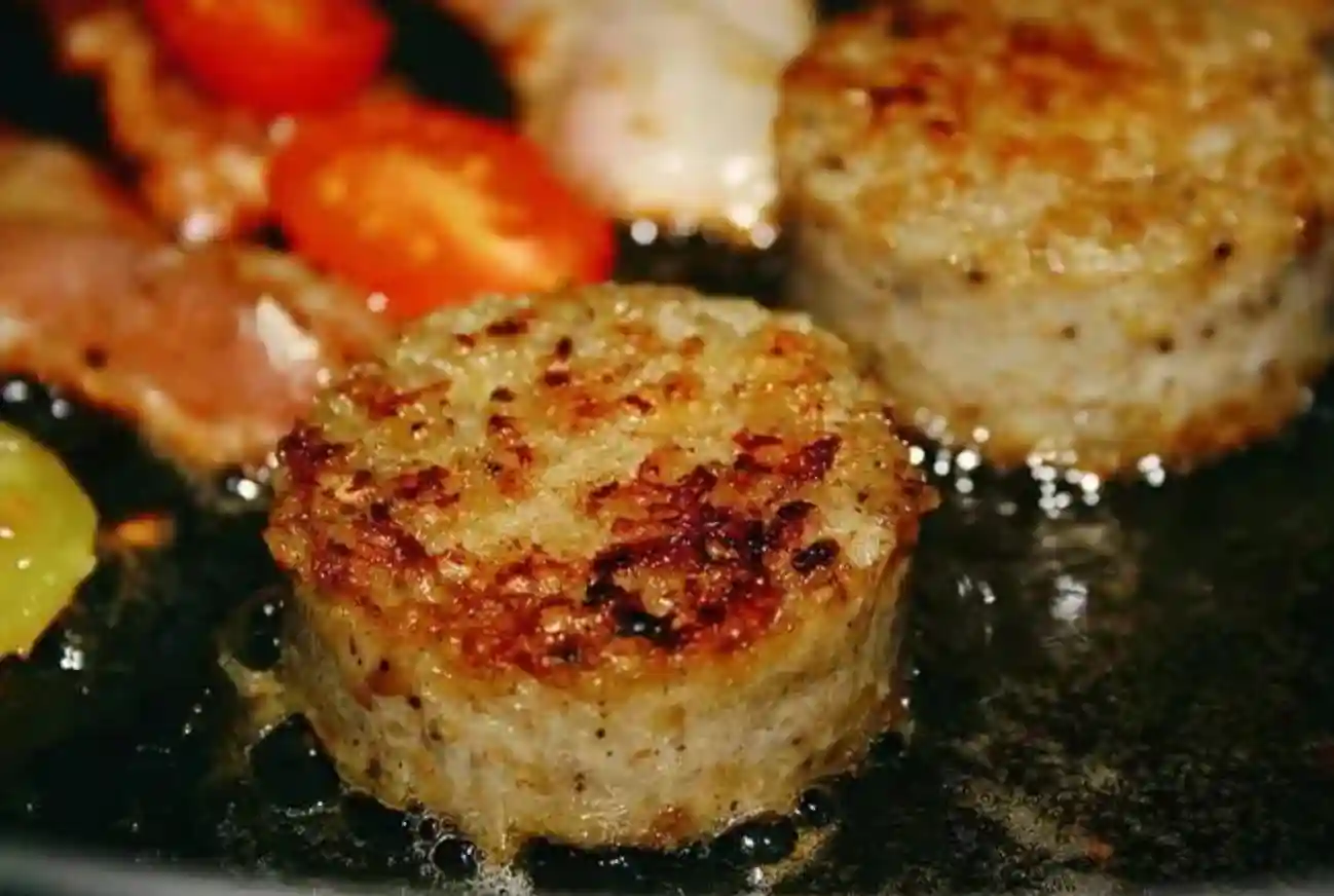 这道菜是英国人早餐桌上常见的一种,切上几片和烤豆、西红柿、蘑菇、鸡蛋等一起吃。
