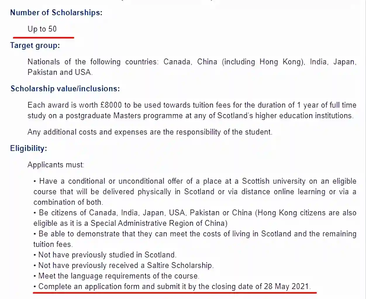 而且苏格兰为其所在的高校(格拉斯哥、爱丁堡、邓迪)的中国留学生开设了“兰十字奖学金”(Scotland'sSaltireScholarships),奖金高达£8,000(6.8万元),且申请门槛不高,所有准入学的学生都可以去申请。