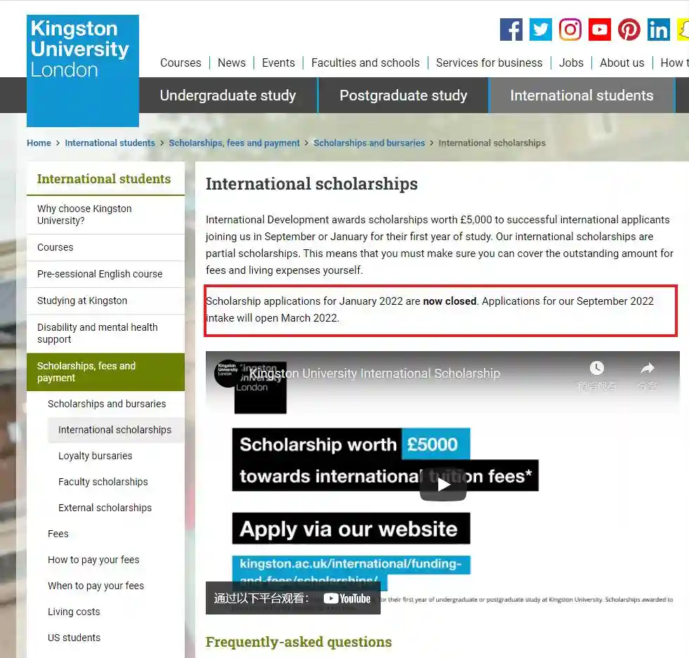 同样的还有金斯顿大学的£5,000奖学金,和威斯敏斯特大学的£2,000奖学金。