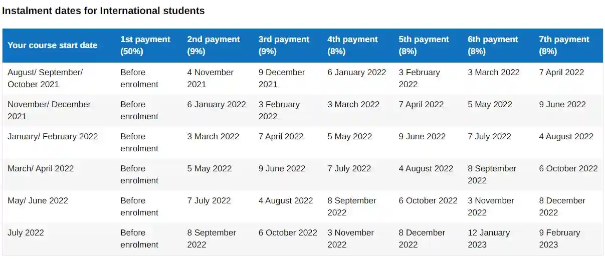 金斯顿大学分期付款时间表