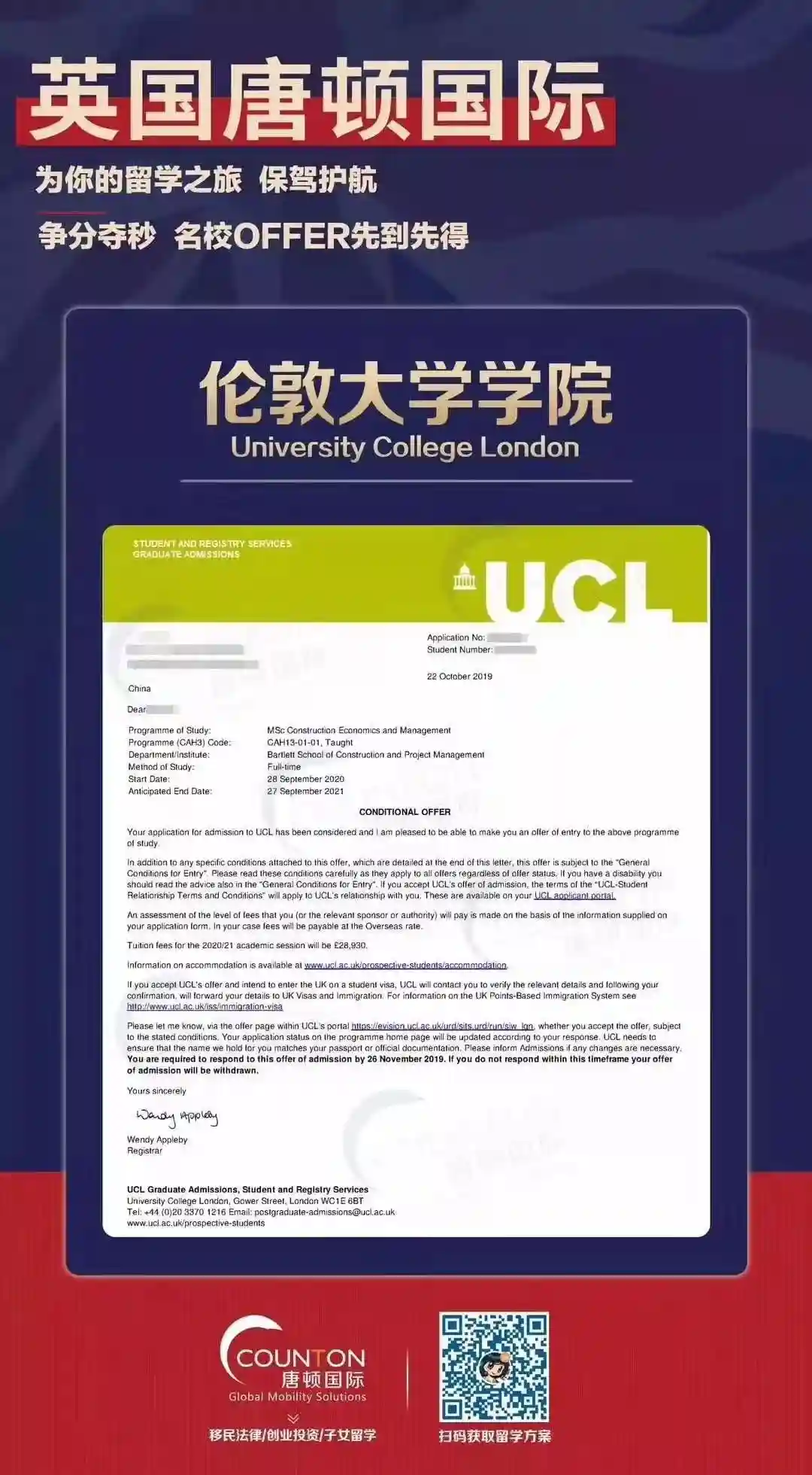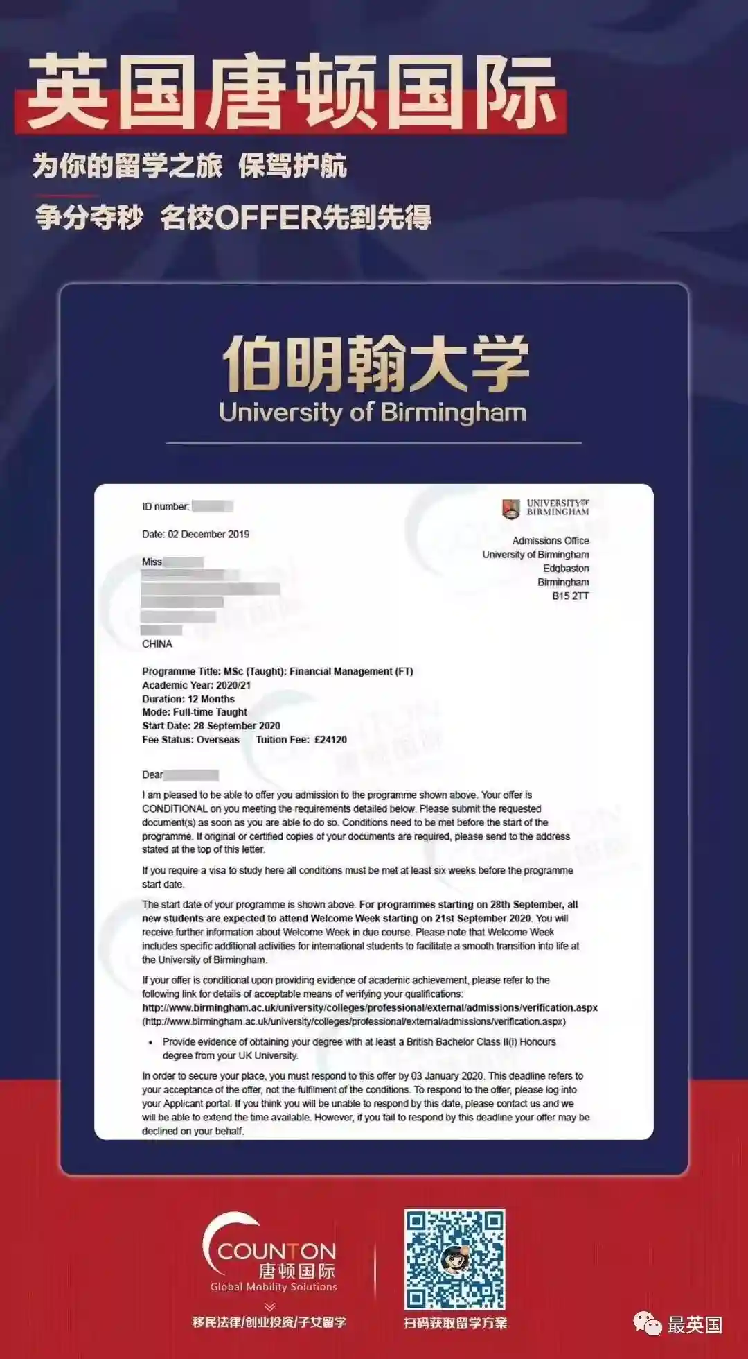 目前,英国大学2020硕士申请正在火热进行中,如果同学们对留学有任何疑问,欢迎添加小唐/海外counton08详询~