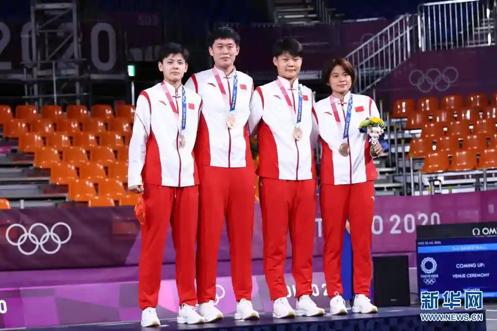 7月28日,中国女子三人篮球队在东京奥运会上获得铜牌。新华社记者兰红光摄