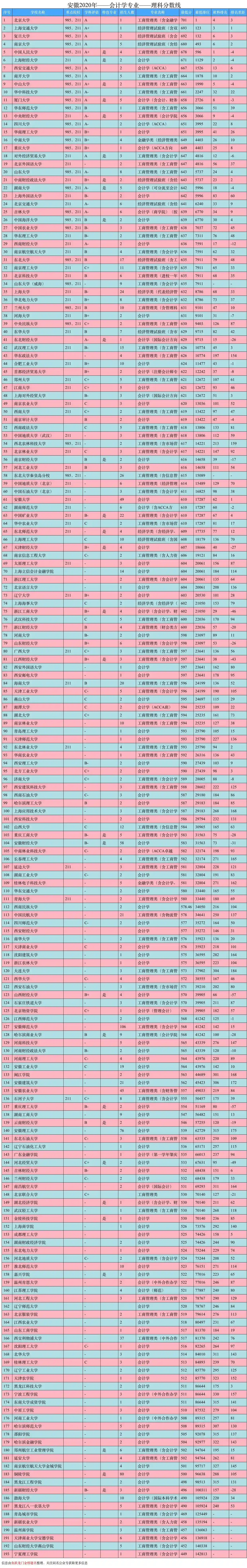 安徽省2020年理科会计学分数线