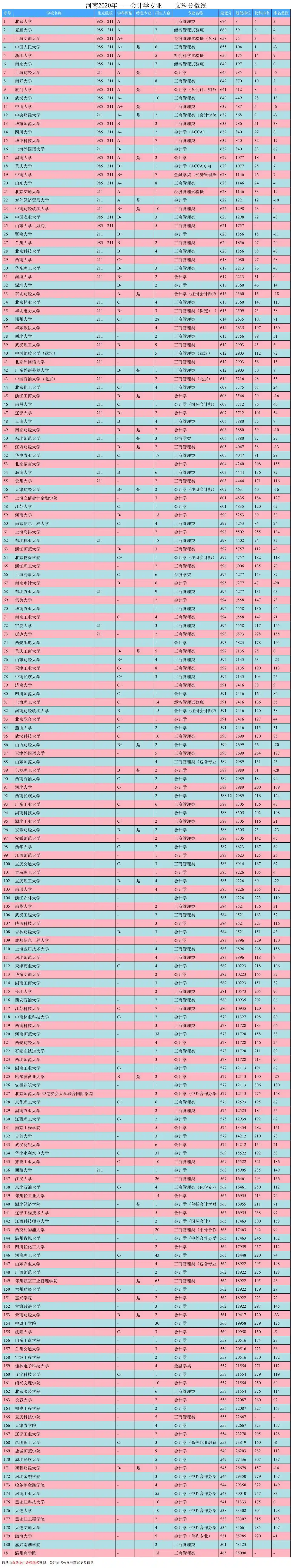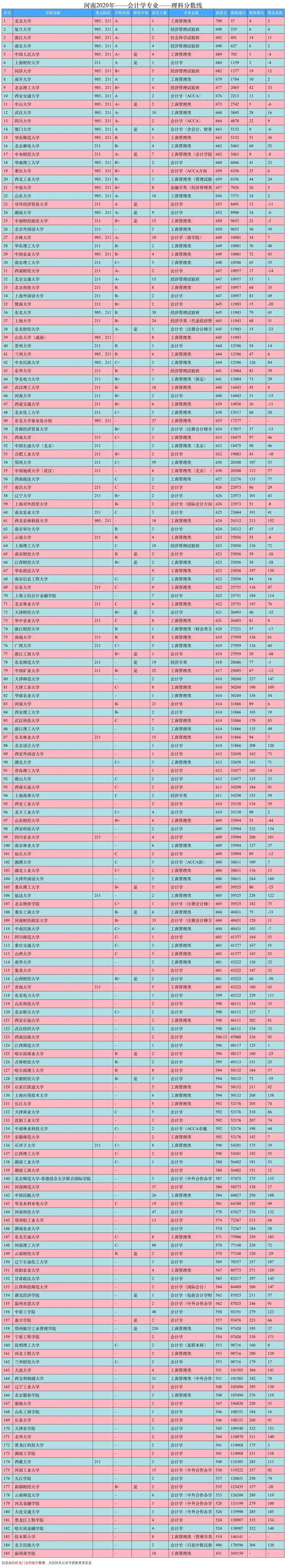 河南省2020年理科会计学分数线