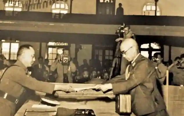 1945年抗日战争胜利在望。作为国军总司令的何应钦自然成为了受降仪式上的主角。然而,在接过日本投降书的时候他却意外地弯下了腰。