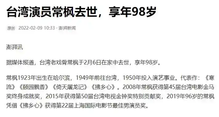 常枫是台湾电影电视的“活化石”。