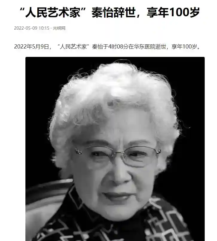 2022年5月9日,秦怡因病去世,享年100岁。