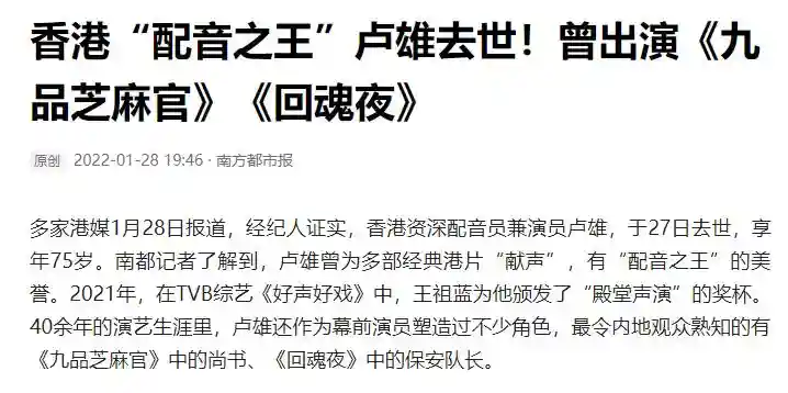 2022年1月27日,卢雄因病去世,享年75岁。