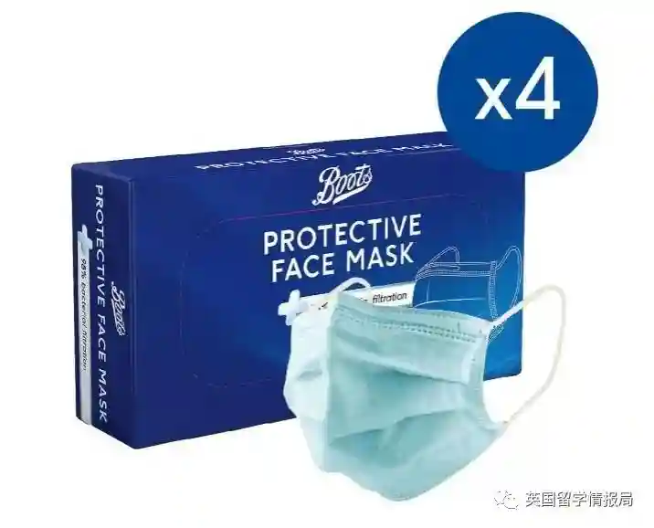 疫情下,大家最关心的还是医用口罩啦。虽然疫情初期,很多英国人都不以为然,不过现在政府也要求大家在公共场合佩戴口罩,现在从英国的各大超市都可以买到口罩了。Boots自家的医用口罩,一盒20只,买四盒可以减20镑,核算下来80只口罩只要40镑,50p一只口罩,价格还是很公道的。