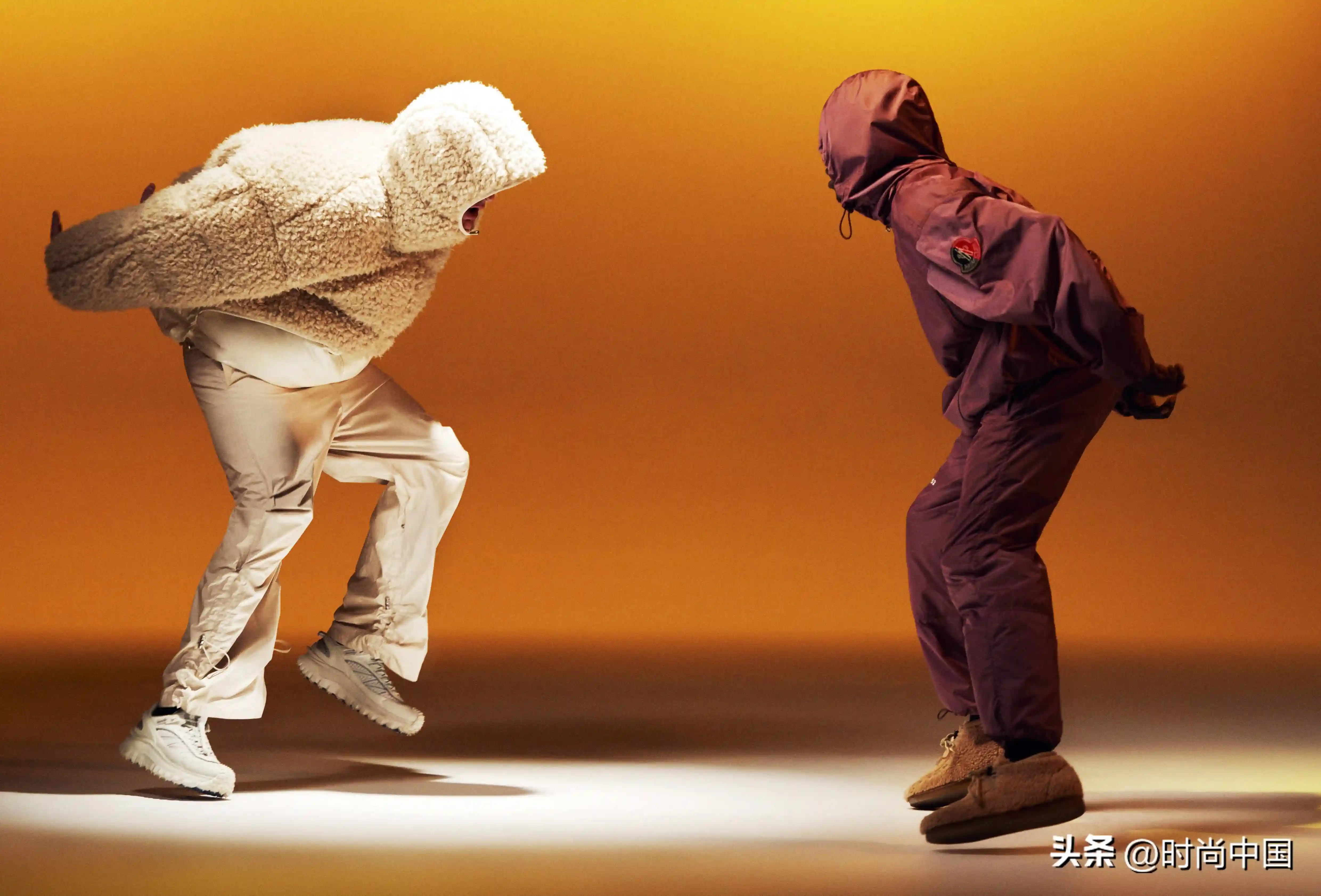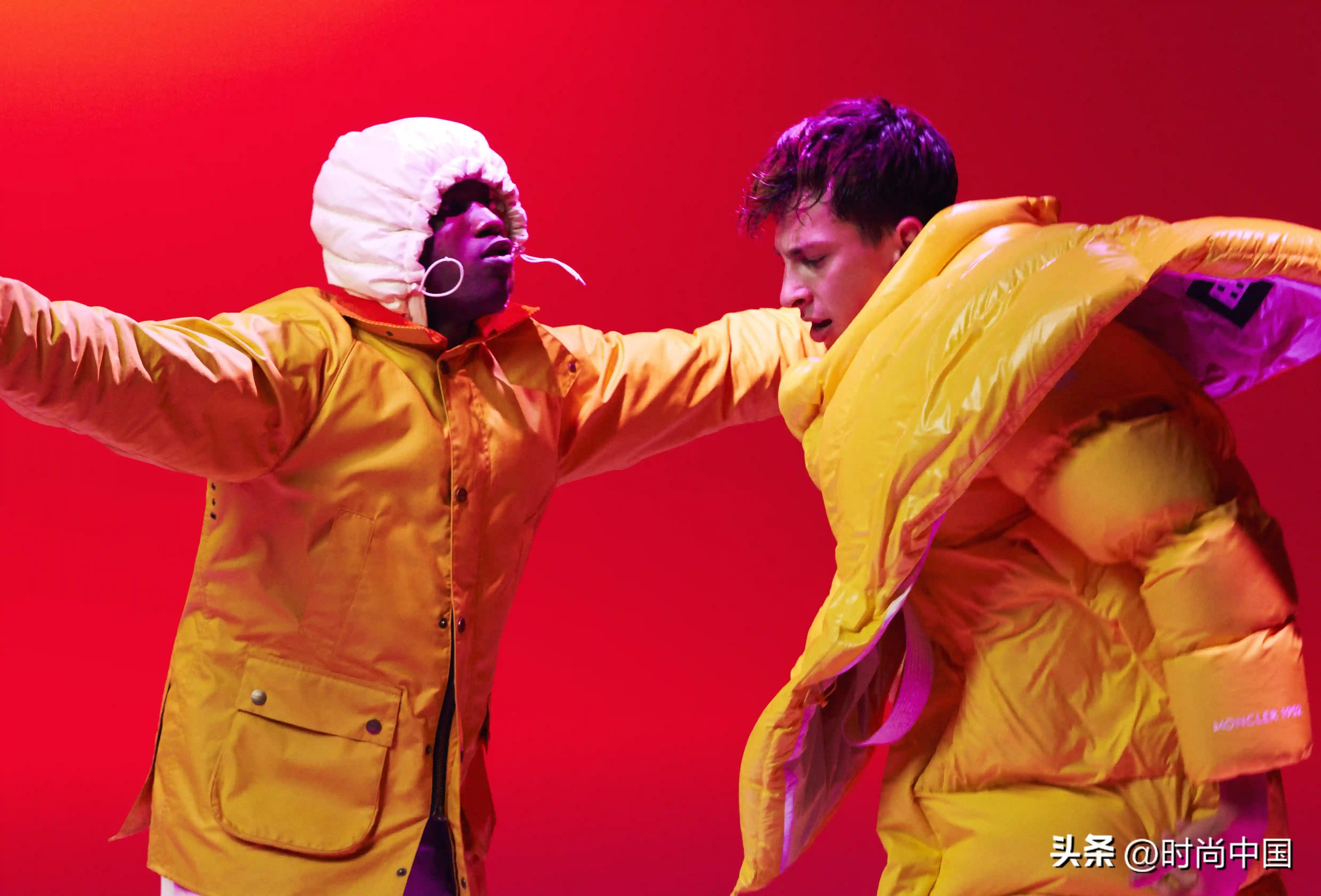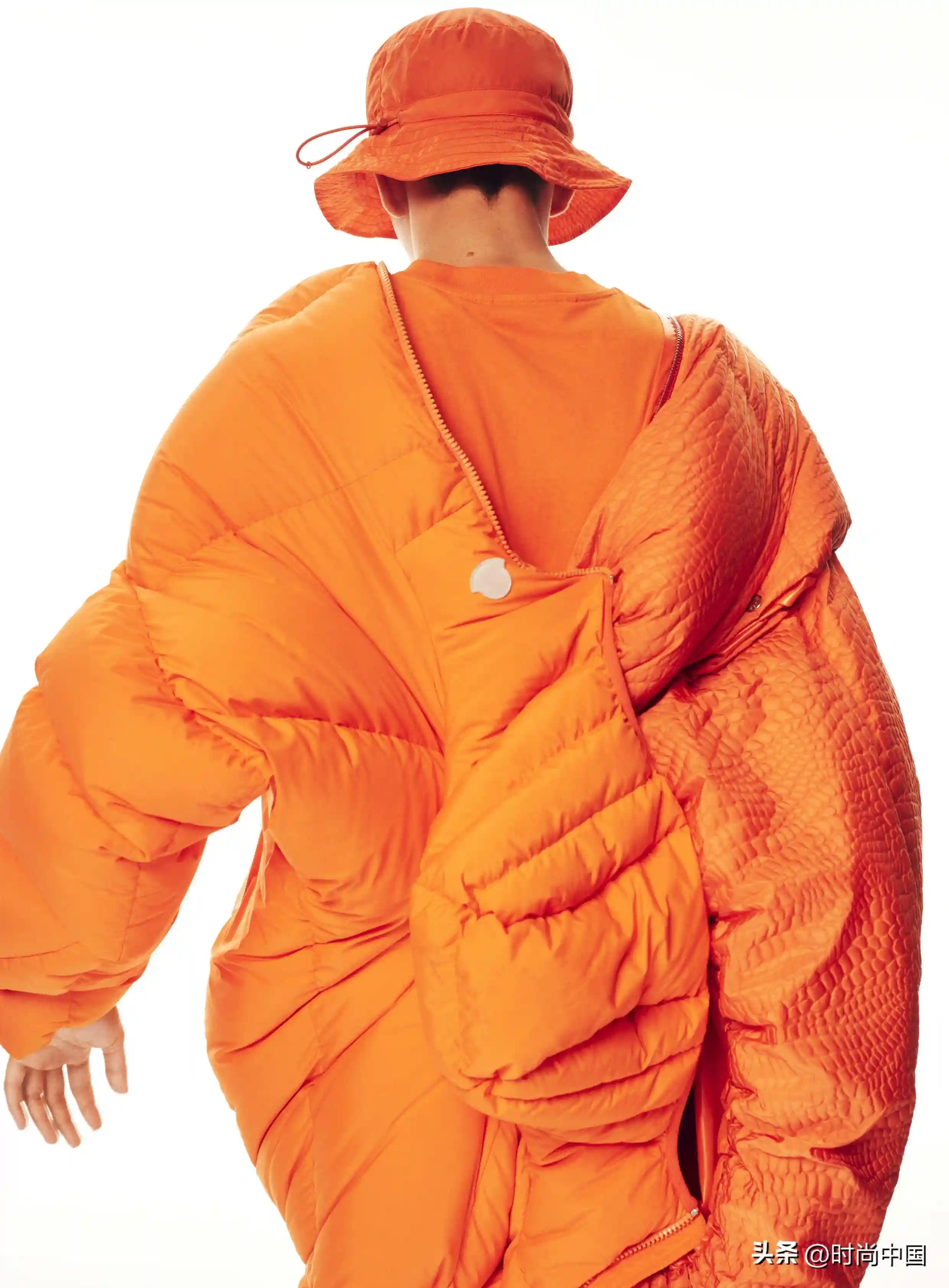 服饰版型与色彩吸睛亮眼,线条圆润的超大廓形配以明亮的橙橘色调,飘逸于身体之上,翩然摇曳。哑光与闪亮表面交织融合、泰迪绒毛与科技尼龙面料碰撞火花,令新颖廓形倍添迷人风采。