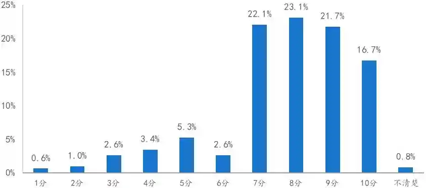 通过数字化手段的运用,消费金融机构得以为客户提供更加智能化、个性化的服务,从而提升客户服务水平。在消费金融业务整体满意度评价方面,8分及以上的高分区用户占比为61.5%,总体来看,用户的满意度评价较为均匀地分布在7至9分。
