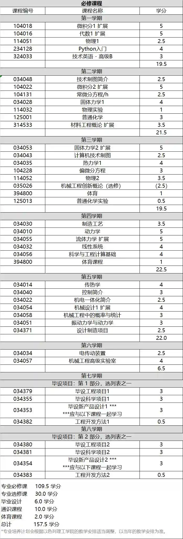 在“宽口径”“强实践”“求创新”的人才培养方针下,学子们在前四学期主要进行学科基础和通识学习,涉及微积分、大学物理、计算机编程、热力学、固体力学、材料工程概论、流体力学等核心课程,为接下来的学习之旅打下良好坚实的基础。后四学期以核心课程知识体系为基础,同时学习与机械工程、机器人紧密相关的特色选修课,提升自身科学研究和解决实际工程问题的能力,为将来深造或求职就业打牢“地基”。