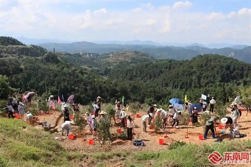 中美青年在鼓岭植树。