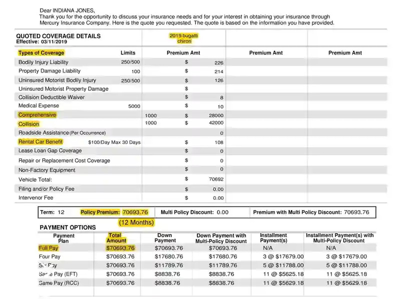 在国外,一般车型的保费一年1000多吧,像奔驰GLC300一年的保费仅为1842美元,福特Escape仅1051美元。不同国家,不同价格,布加迪chiron的保费基本是5万美元起步,7万多美元保费实属正常,大概就是这个水平。如果按照5万美元来计算,一年的保险费用相当于2辆B级高配,这个钱仅仅只是保险而已。