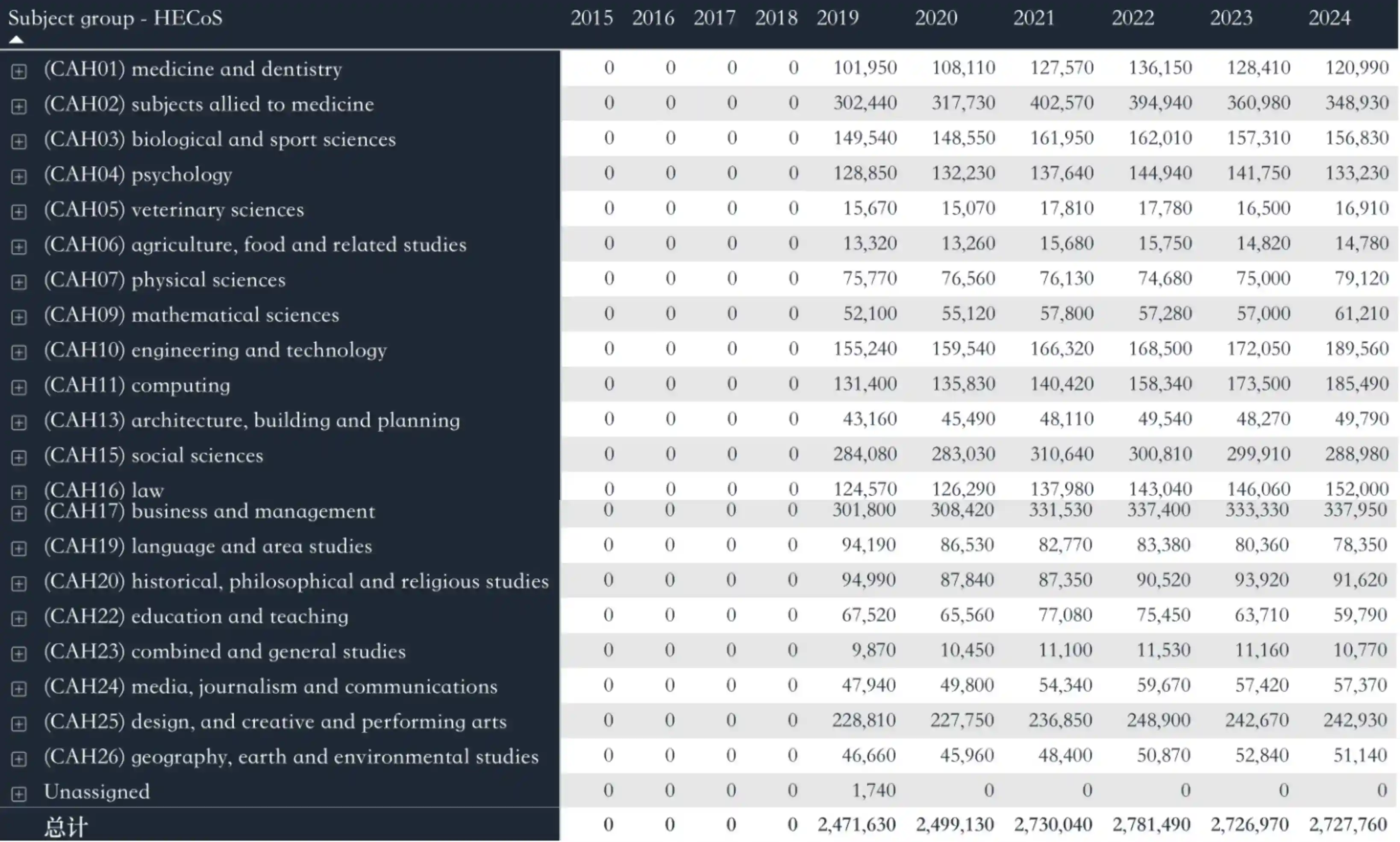 截至1月31日,共59.494万名学生提交英国本科2024Fall(秋季入学)申请,总人数较去年再次减少1650人,同比下降0.3%。